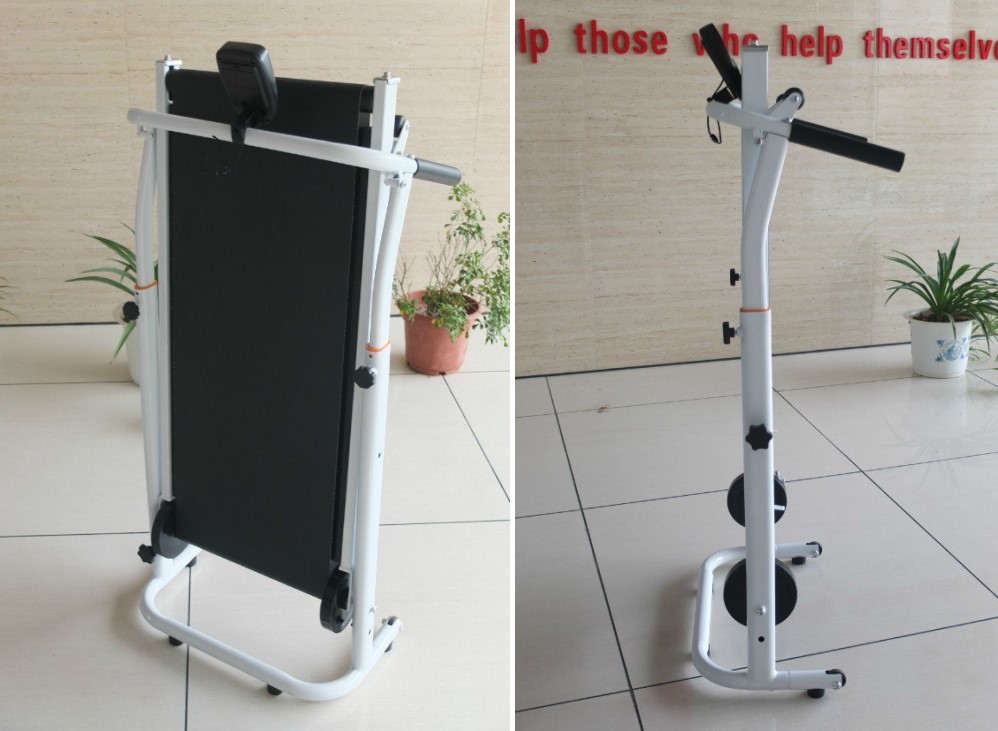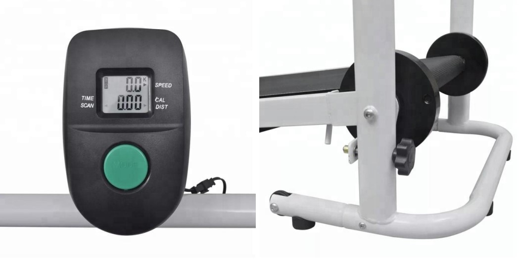 This folding Manual Treadmill is suitable for home use. It belongs to the category of magnetic corridors, ie it works through the user's movement, since each step pushes the carpet backwards. This makes it more difficult as the user has to constantly put pressure, but at the same time it is more economical and relatively quiet.