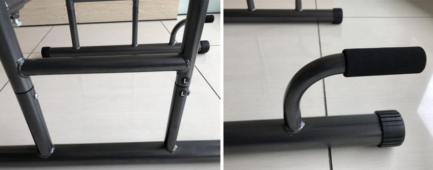 * Sturdy Construction - Made of thickened heavy duty steel construction and holds up to 120kgs. High-density foam rubber grips, armrests and antiskid screws for extra comfort, stability and durability. The " H "shaped frame base with skid resistant feet enhance security.