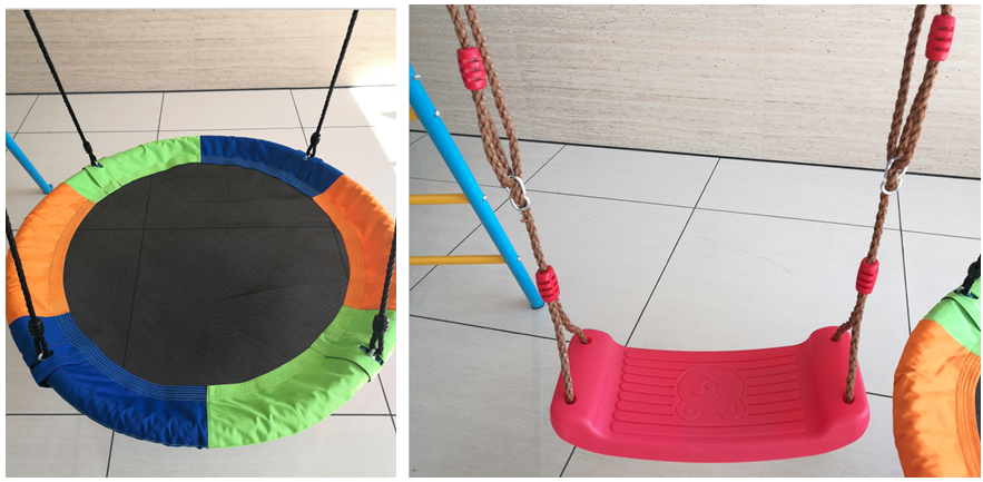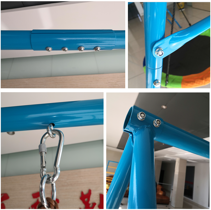 This heavy-duty steel tube A-Frame swing set with excellent safety and stability can be a special gift for kids. It can be used as kids’ playground equipment in the garden, with high quality nest swing and swing chair. Kids can improve their motor and coordination abilities by climbing on the steel ladders and doing swing sports on it. It can be used as a punching bag rack for adults as well!