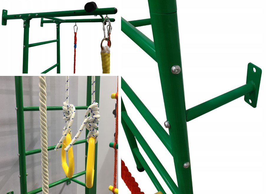 Kids Climbing Frame is a sports equipment for the development of Children. The climbing frame is designed for wall mounting, all necessary screws and dowels are part of the package.