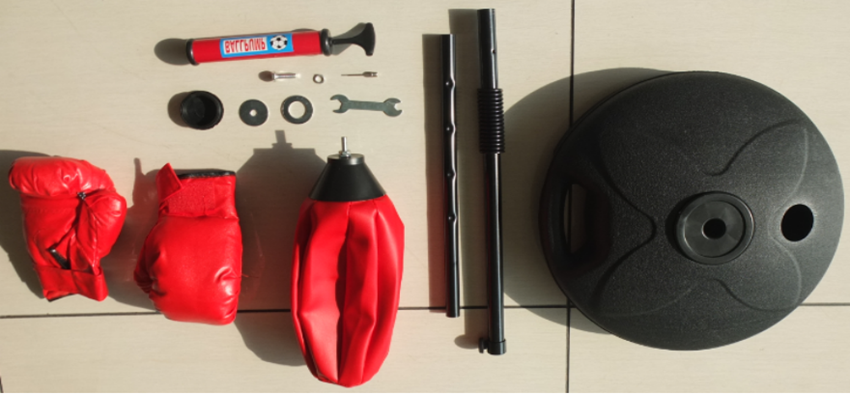 * Include: Punch bag ball; Steel Stand; Black Base; Standard sized boxing gloves; Air pump.