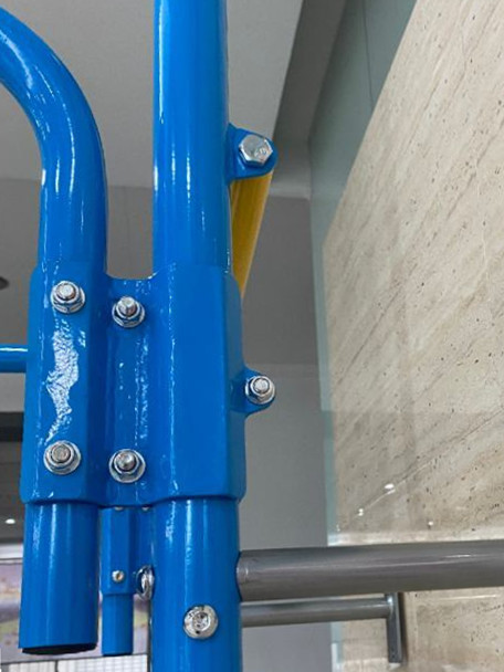 The kids' climbing toy is made of steel, and fixed to the wall, which make it firm and steady.