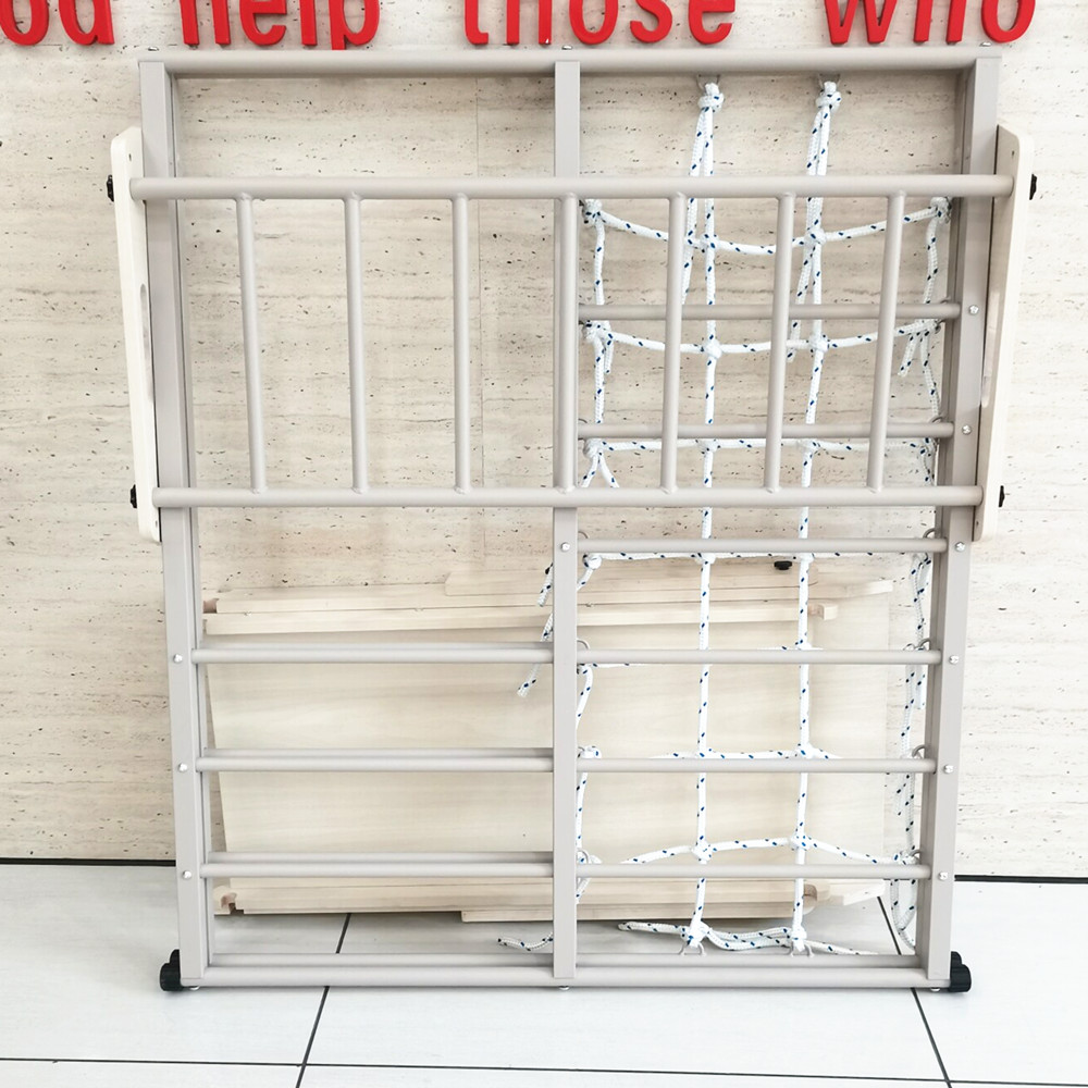 The kids' climbing toy is made of steel, which make it firm and steady.